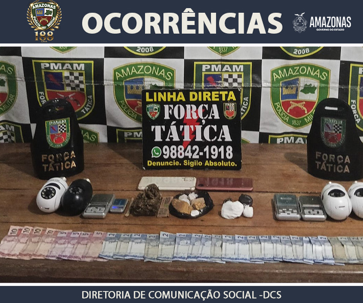 Suspeito tentou fugir ao perceber a aproximação da viatura policial   A Polícia Militar do Amazonas (PMAM), por meio da 4ª Companhia Interativa Comunitária (Cicom), prendeu um homem, de 27 anos,...                                                                                                                                                                                                                                                Suspeito foi preso com droga, balança de precisão e dinheiro em espécie   A Polícia Militar do Amazonas (PMAM), por meio da 4ª Companhia Interativa Comunitária (Cicom), prendeu um homem,...                                                                                                                                                                                                                                                Homem foi abordado após suspeita de venda de entorpecentes   A Polícia Militar do Amazonas (PMAM), por meio da 7ª Companhia Interativa Comunitária (Cicom), prendeu um jovem, de 18 anos, após...